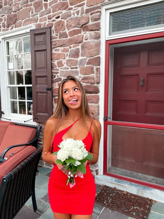 Red hoco dress, bodycon dress Short Prom Dresses fg3820