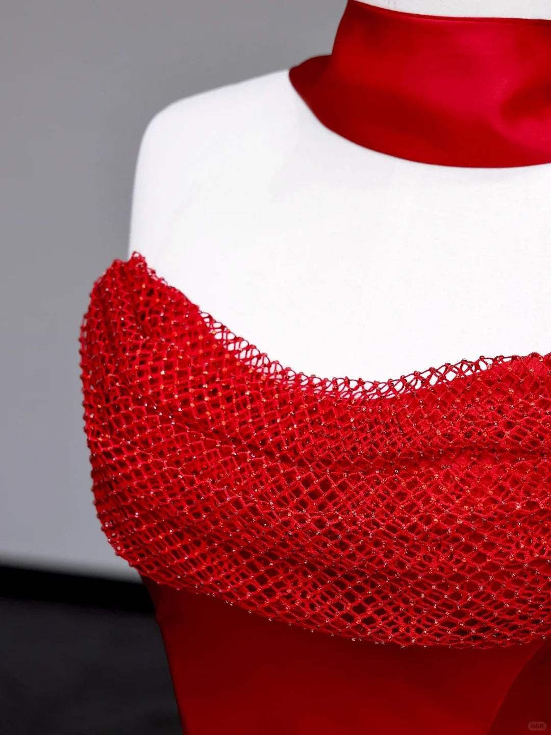 preppydressess -Red simple unique long satin prom dress evening dress party dress gh5116