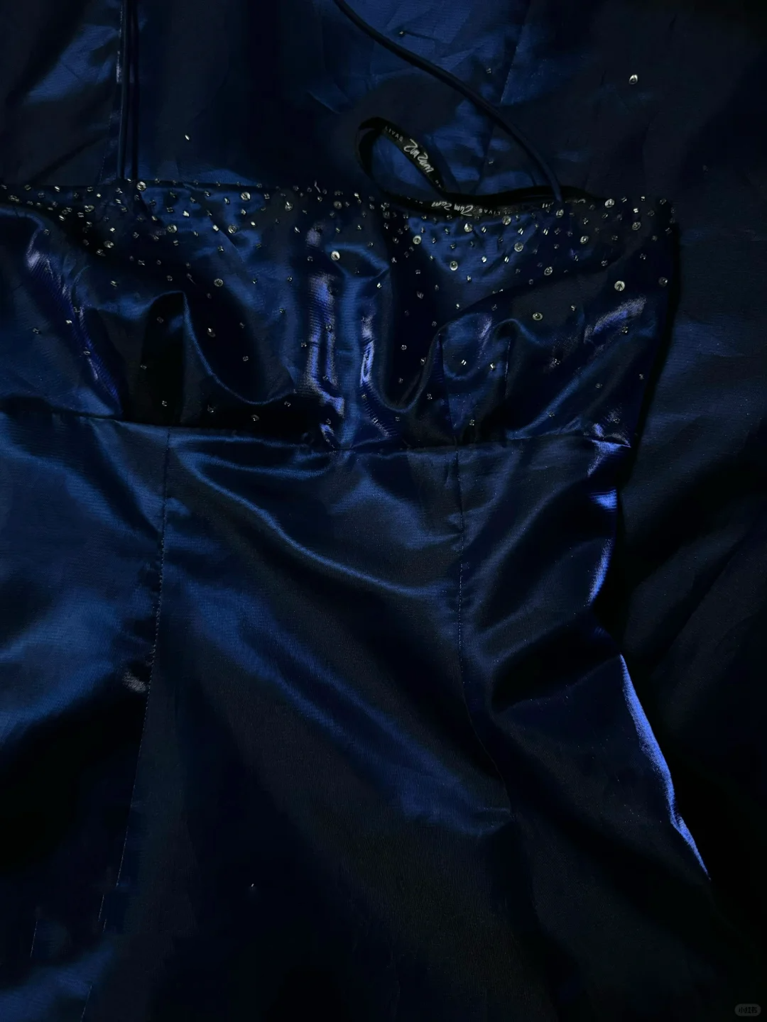Retro A line Halter Royal Blue Satin Beaded 18th Birthday Dress Prom Dress Birthday Outfits For Women DP2069