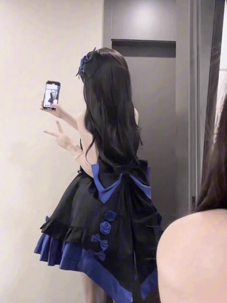 Retro Ball Gown Straps Short Royal Blue Mini Floral 16th Birthday Dress Lolita Dress 18th Birthday Outfits W1211