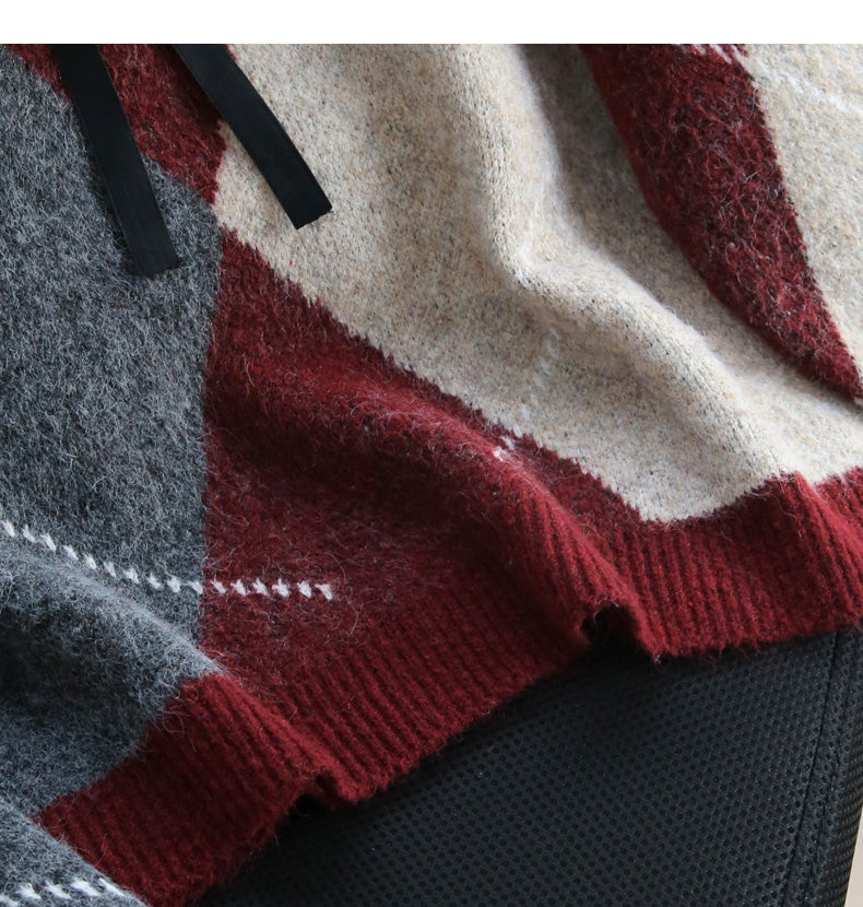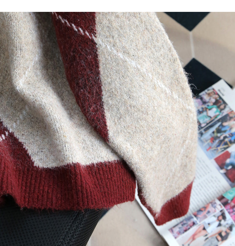 Retro contrast lace patchwork long-sleeved sweater ED0538
