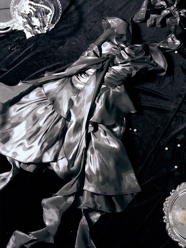 Retro High Low Irregular Spaghetti Straps Gray Short Birthday Dresses Birthday Outfits SD491