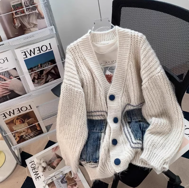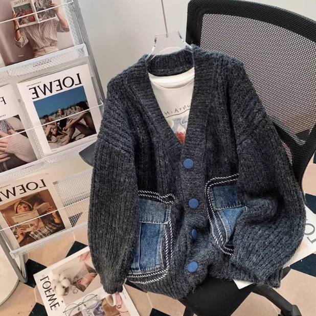 Retro Japanese denim patchwork cardigan ED0358