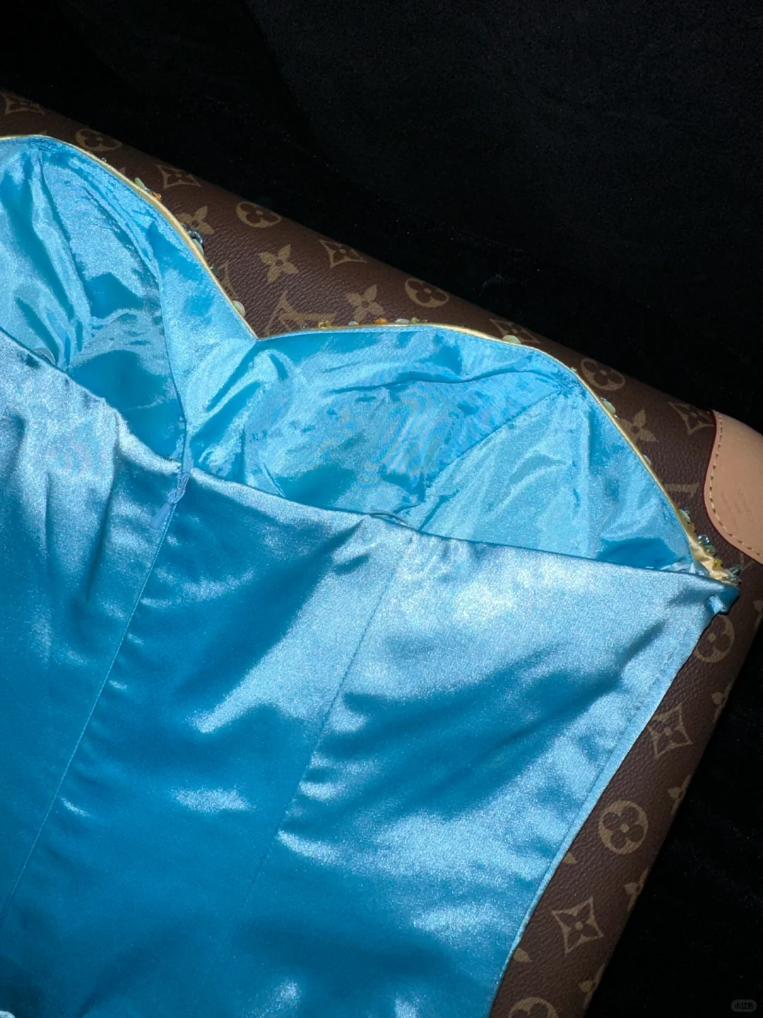 Retro Mermaid Sweetheart Neck Beaded Yellow Blue Satin Prom Dress Evening Dress SH3178