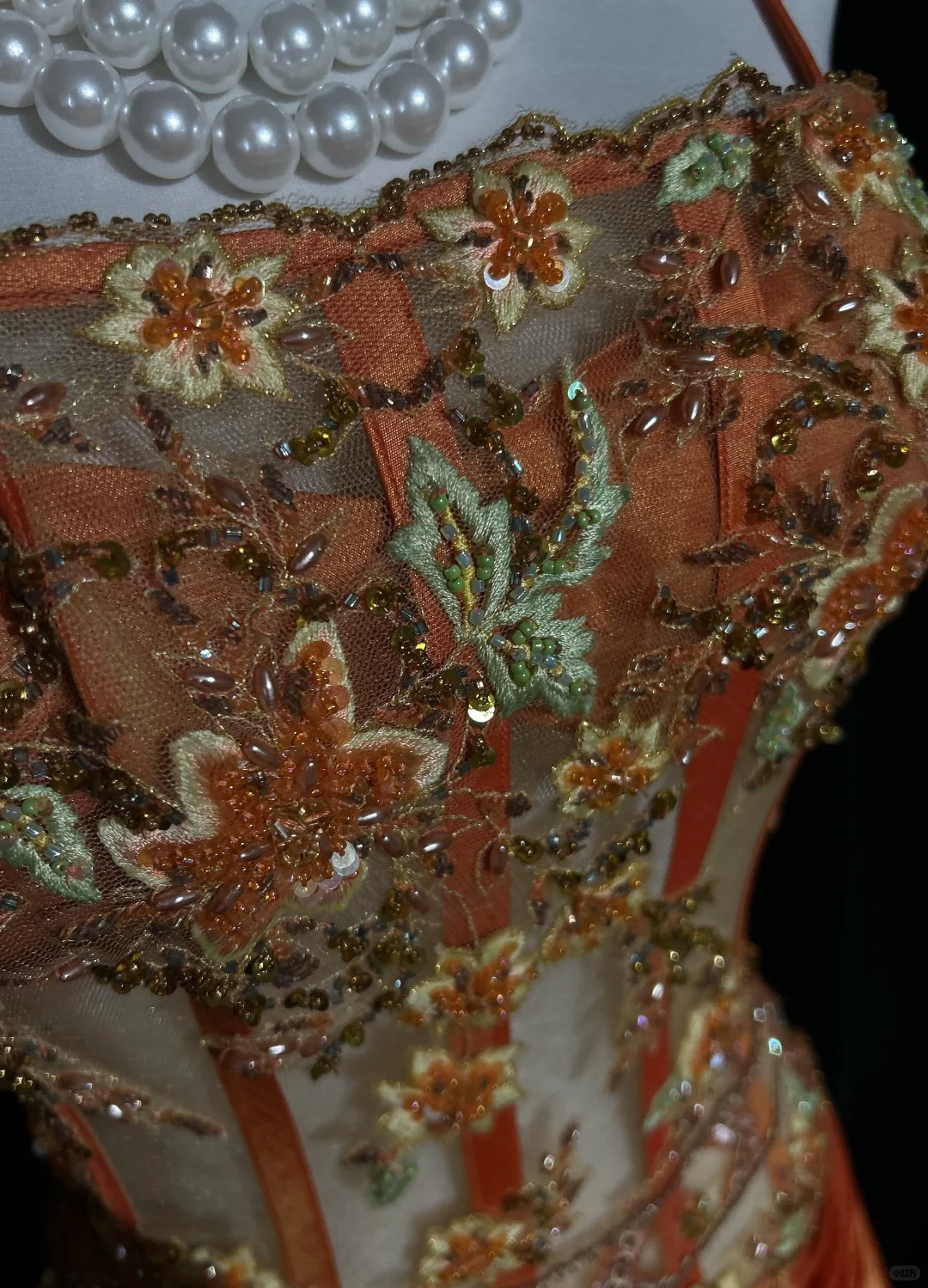 Retro Orange Mermaid Straps Corset Beaded Layered Satin Prom Dress Evening Dress SH3329