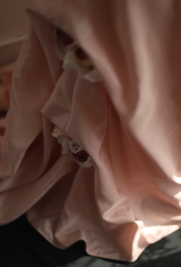 Retro Princess Pink Tube Top Irregular Puff Wedding Dress P2846