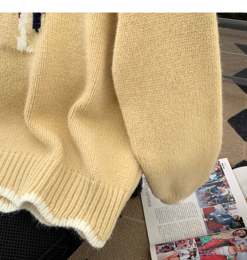Korean style puppy embroidery round neck contrast color sweater ED0455