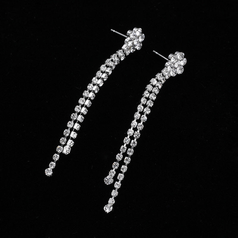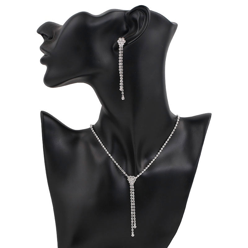Rhinestone Tassel Drop Earrings Necklace Bracelet Set