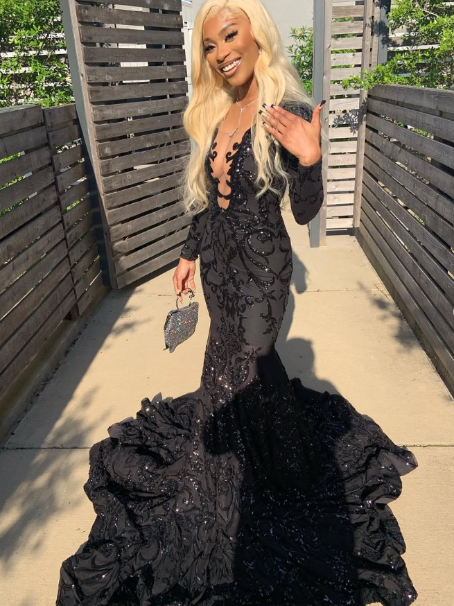 princess black girl long prom dress mermaid dress 6104