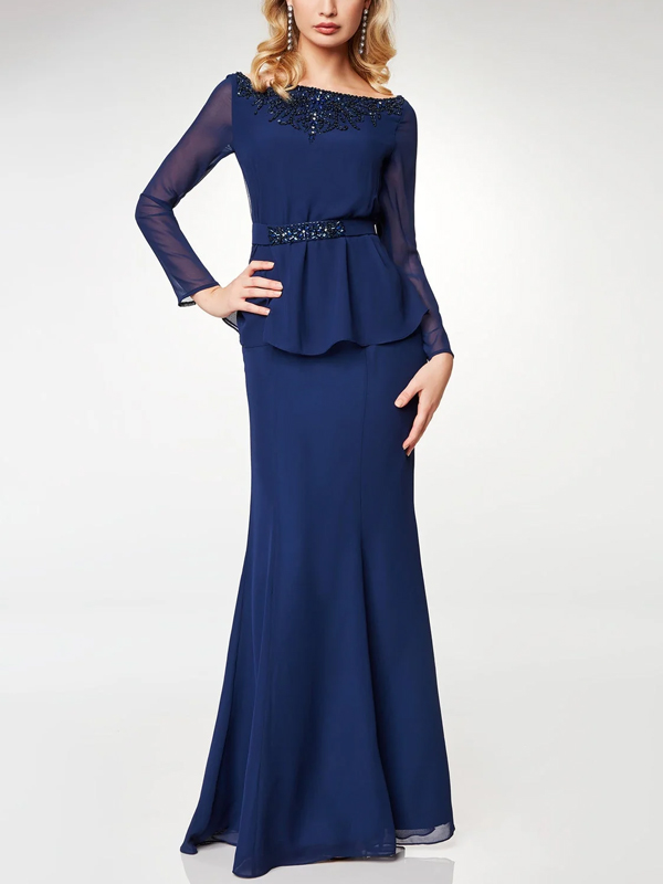 Round Neck Chiffon Solid Color Maxi Dress