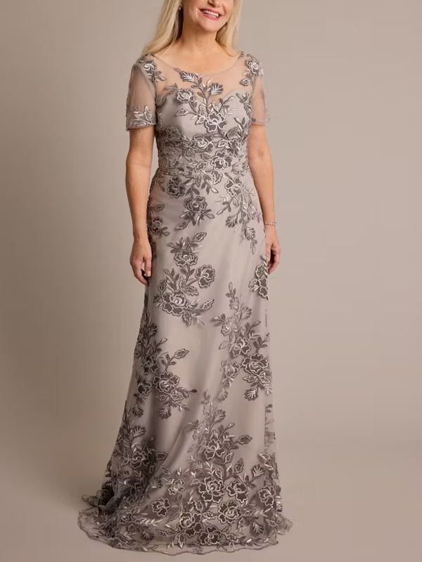 Round Neck Mesh Lace Maxi Dress