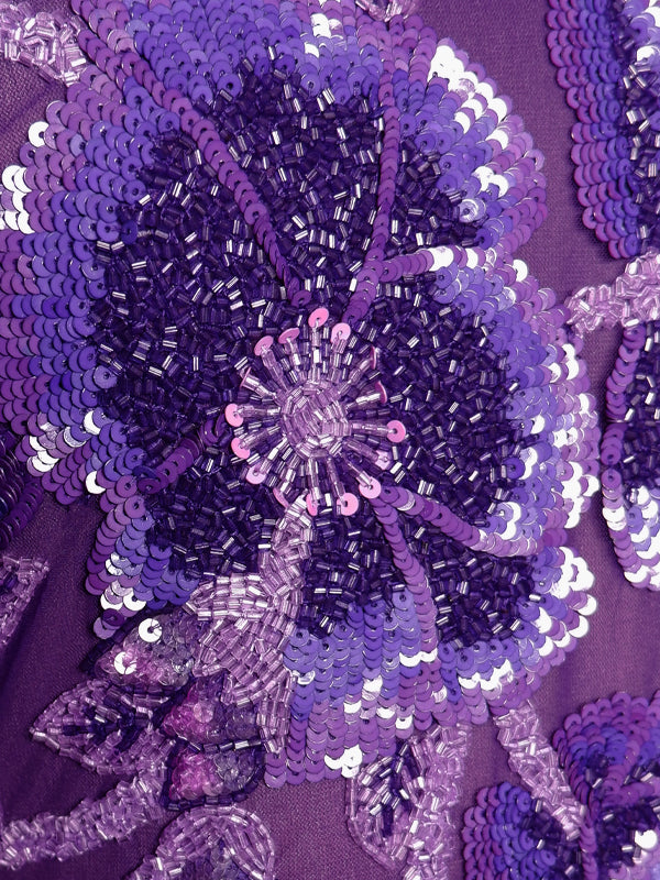 Round Neck Mesh Sequin Solid Color Maxi Dress