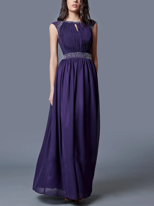 Round Neck Sleeveless Solid Color Sequins Maxi Dress