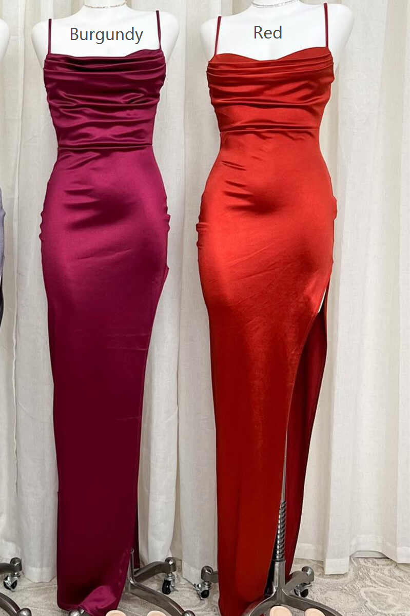 Royal Blue Satin Cowl Neck Long Formal Dress with Slit