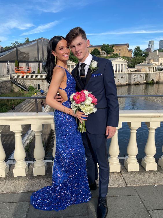 Royal Blue Sequin Mermaid Prom Dresses Evening Party Formal Gowns fg3776
