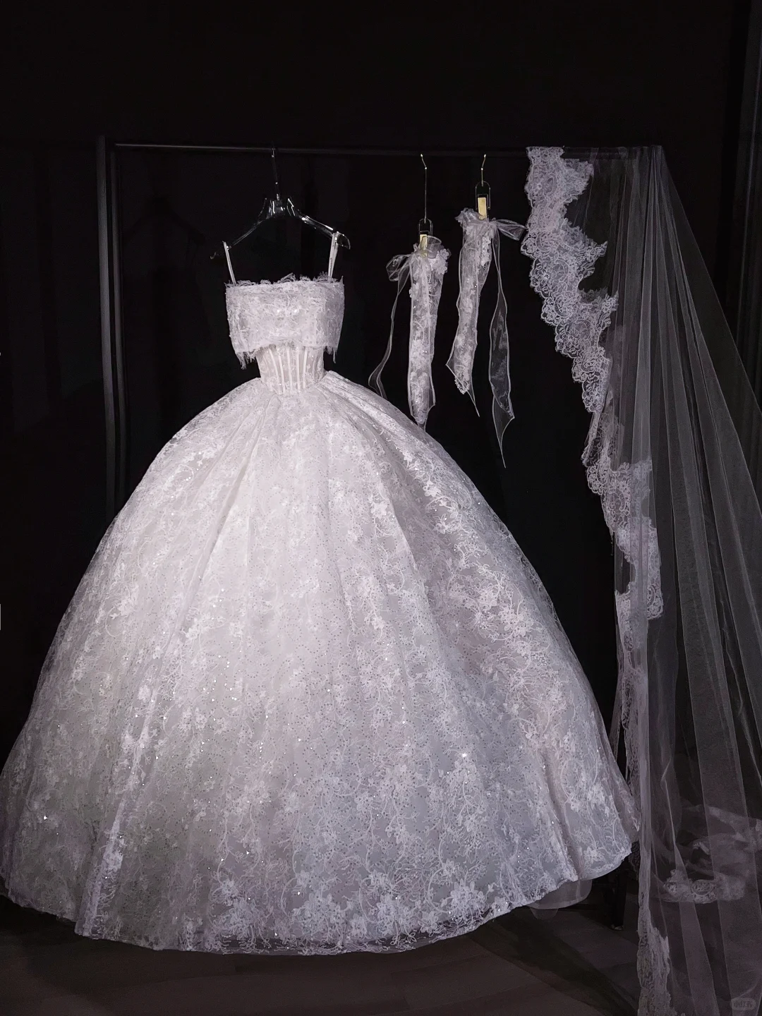 Rustic Wedding Dress Ball Gown Strapless White Lace Long Wedding Dresses Bridal Gowns DP1990
