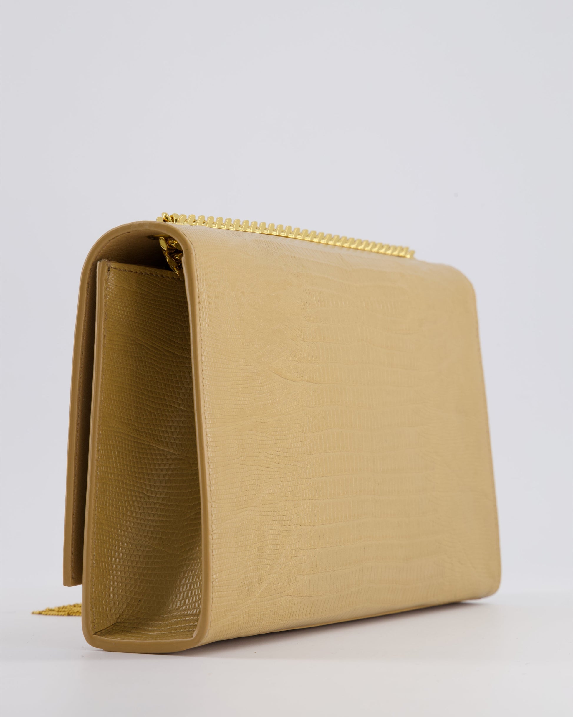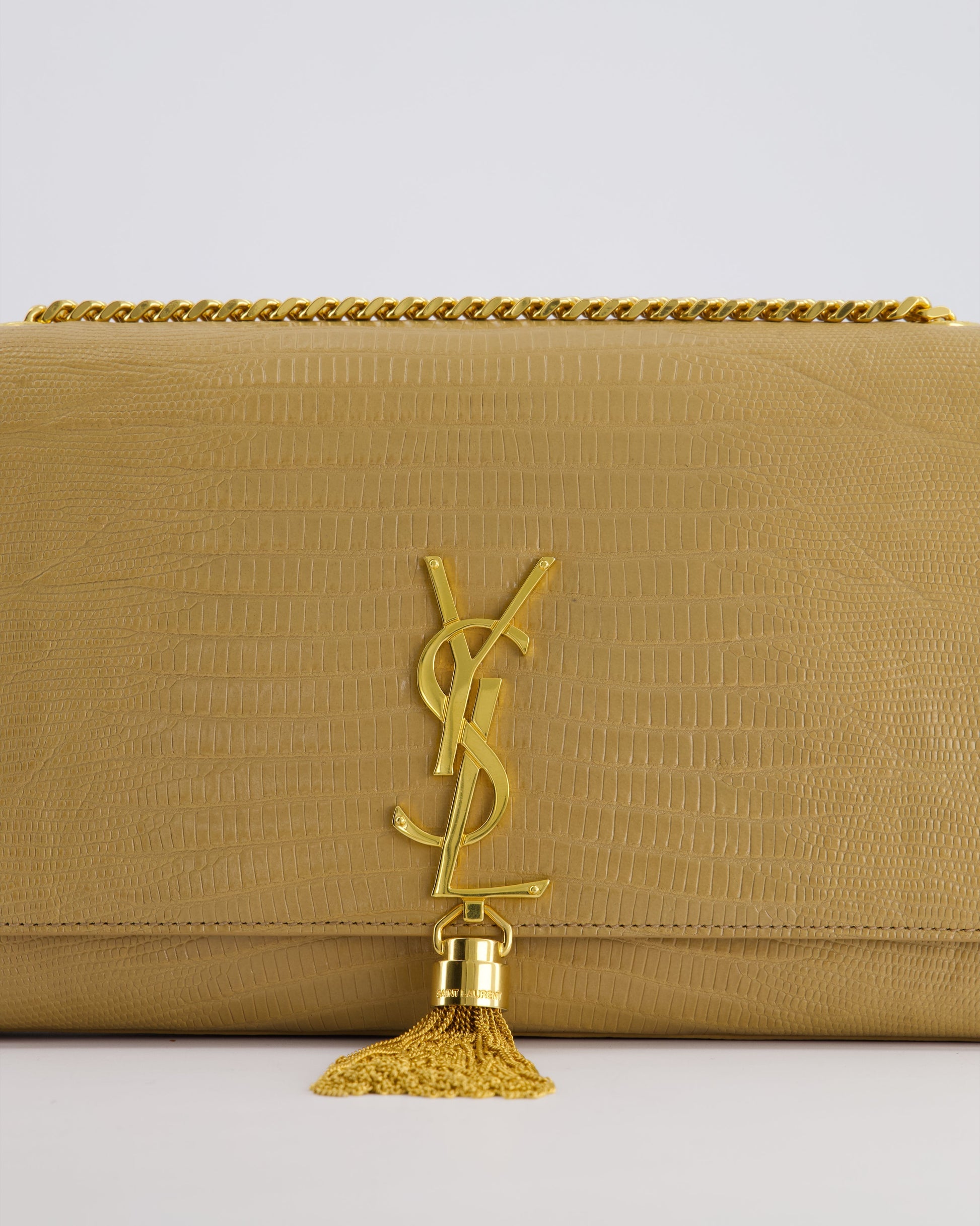 Saint Laurent Beige Lizard Embossed Kate Tassel Bag with Gold Hardware