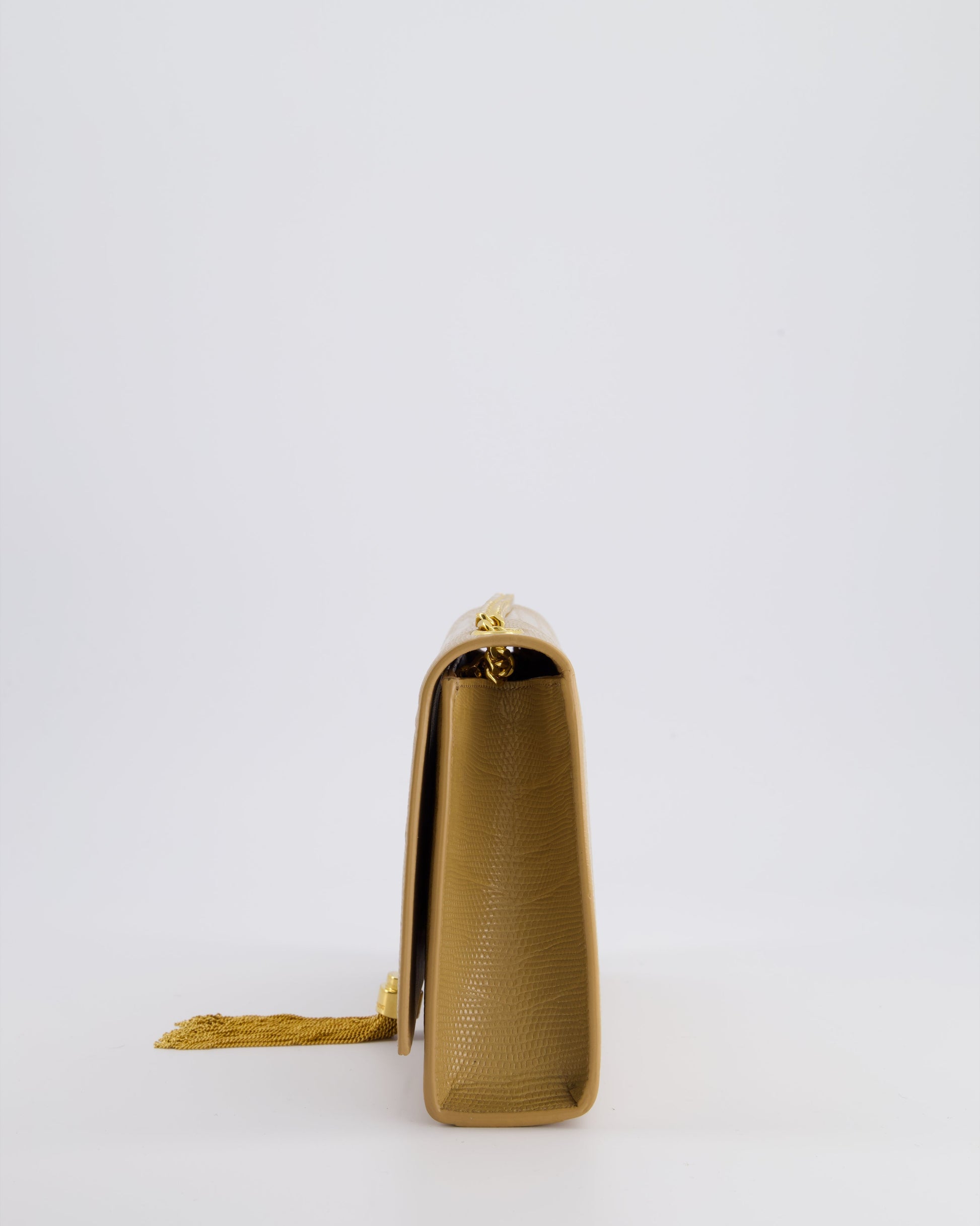 Saint Laurent Beige Lizard Embossed Kate Tassel Bag with Gold HardwareÂ