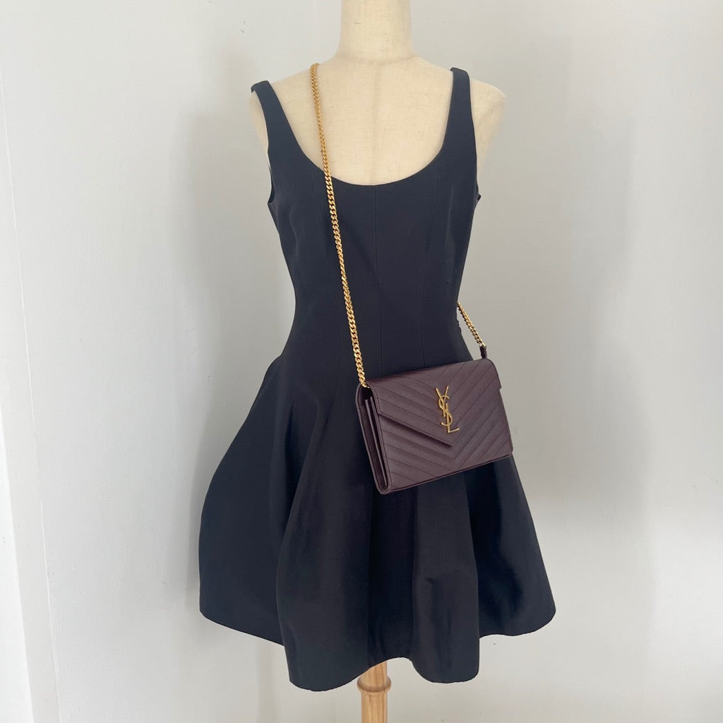 Saint Laurent burgundy Cassandre Chain Wallet in Matelassé Leather