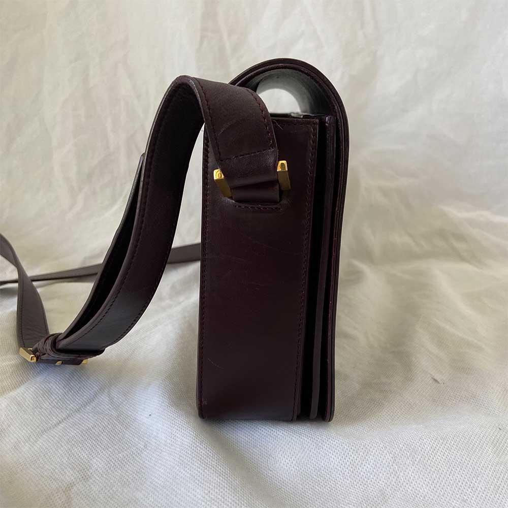 Description : Saint Laurent Burgundy Leather Medium Monogram Université flap bag with gold hardware, adjustable crossbody strap