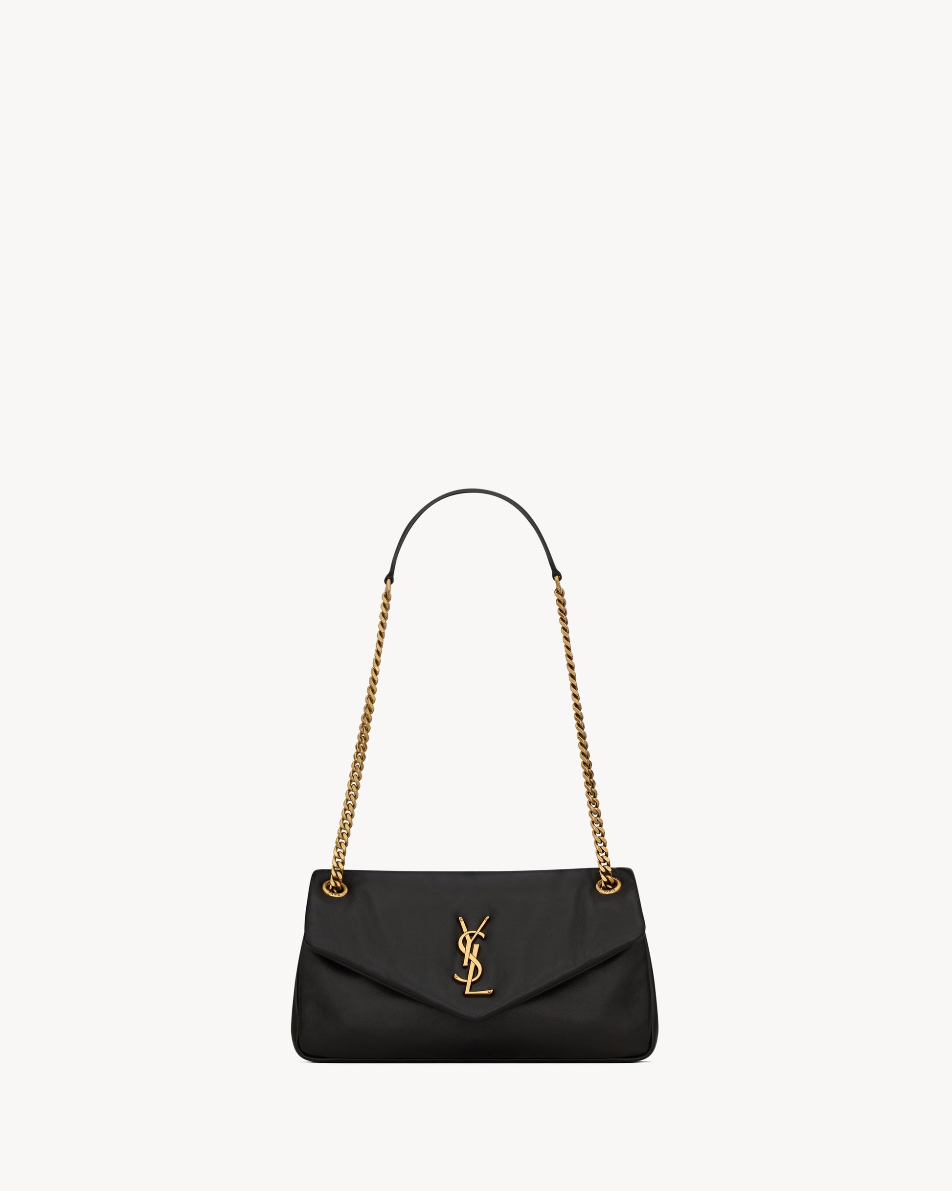BAG decorated with THE CASSANDRE, FEATURING A LEATHER AND CHAIN CROSSBODY STRAP THAT CAN BE WORN DOUBLED FOR SHOULDER CARRY.