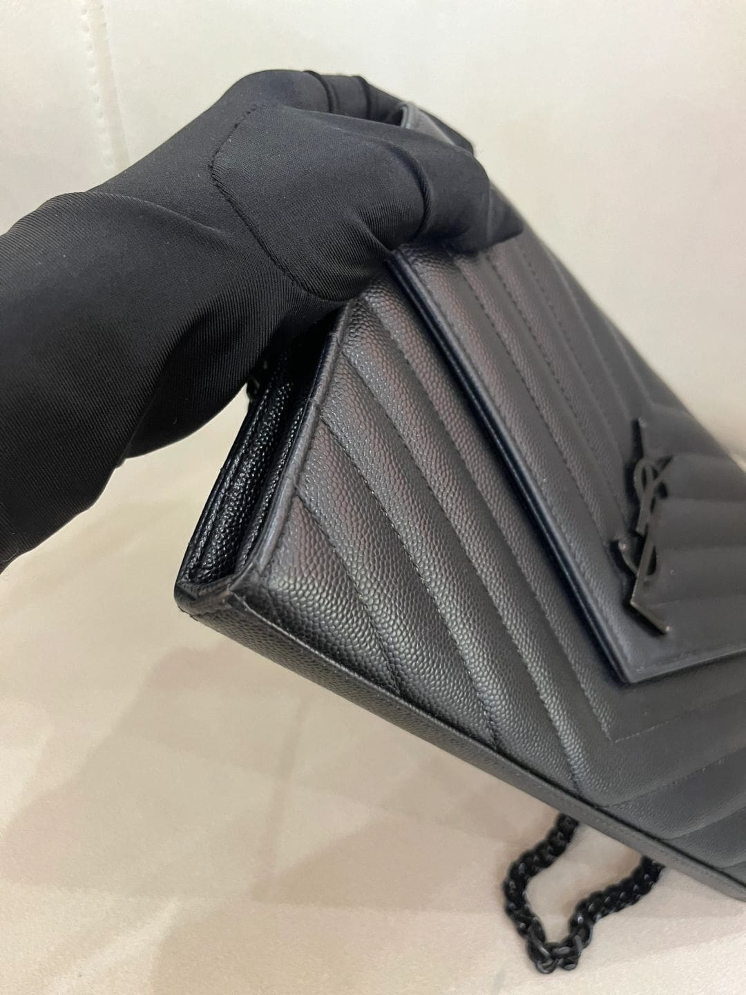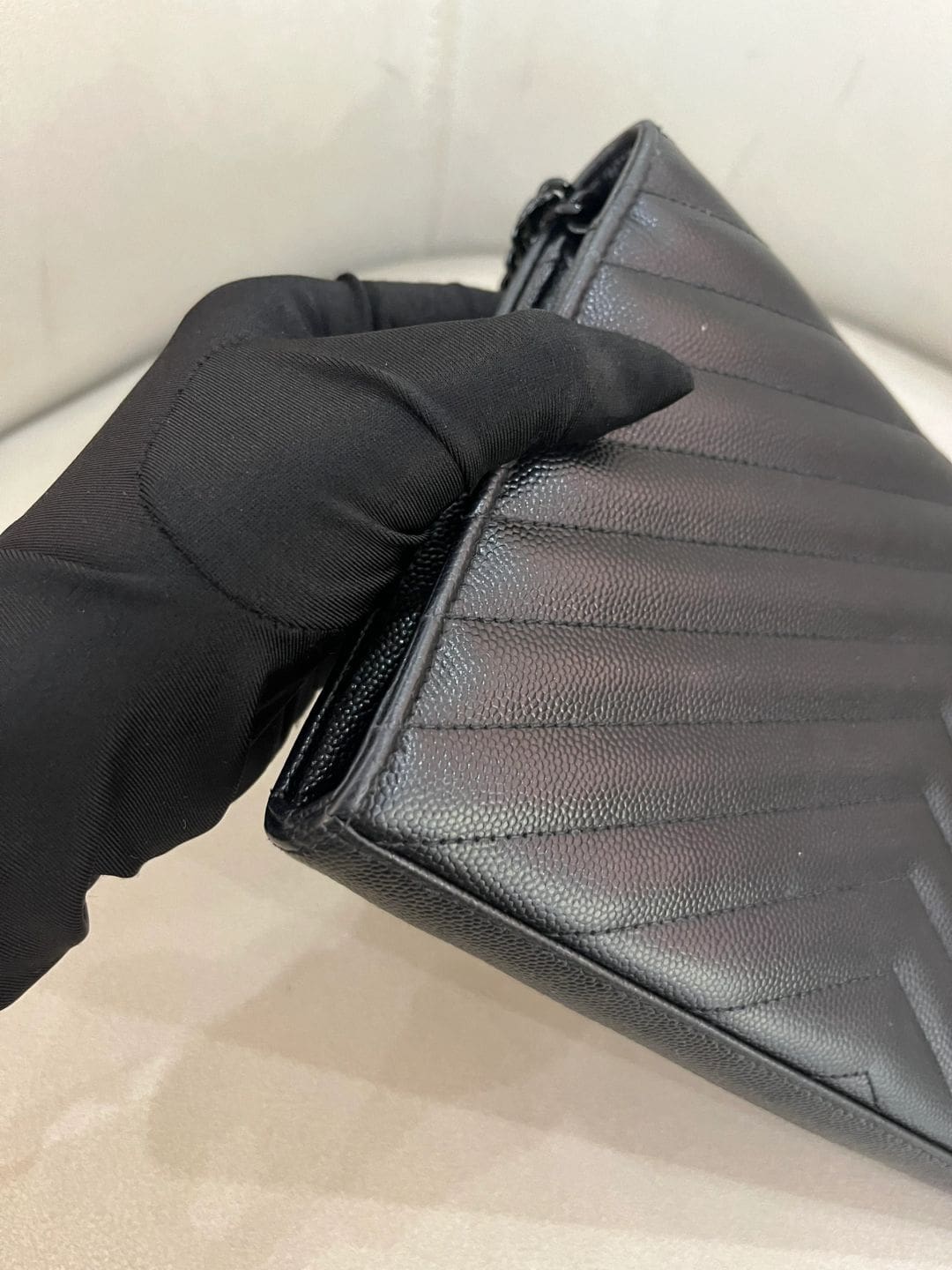 TIMELESS CHAIN PURSE WITH CASSANDRE EMBELLISHMENT AND ICONIC CHEVRON QUILTING.