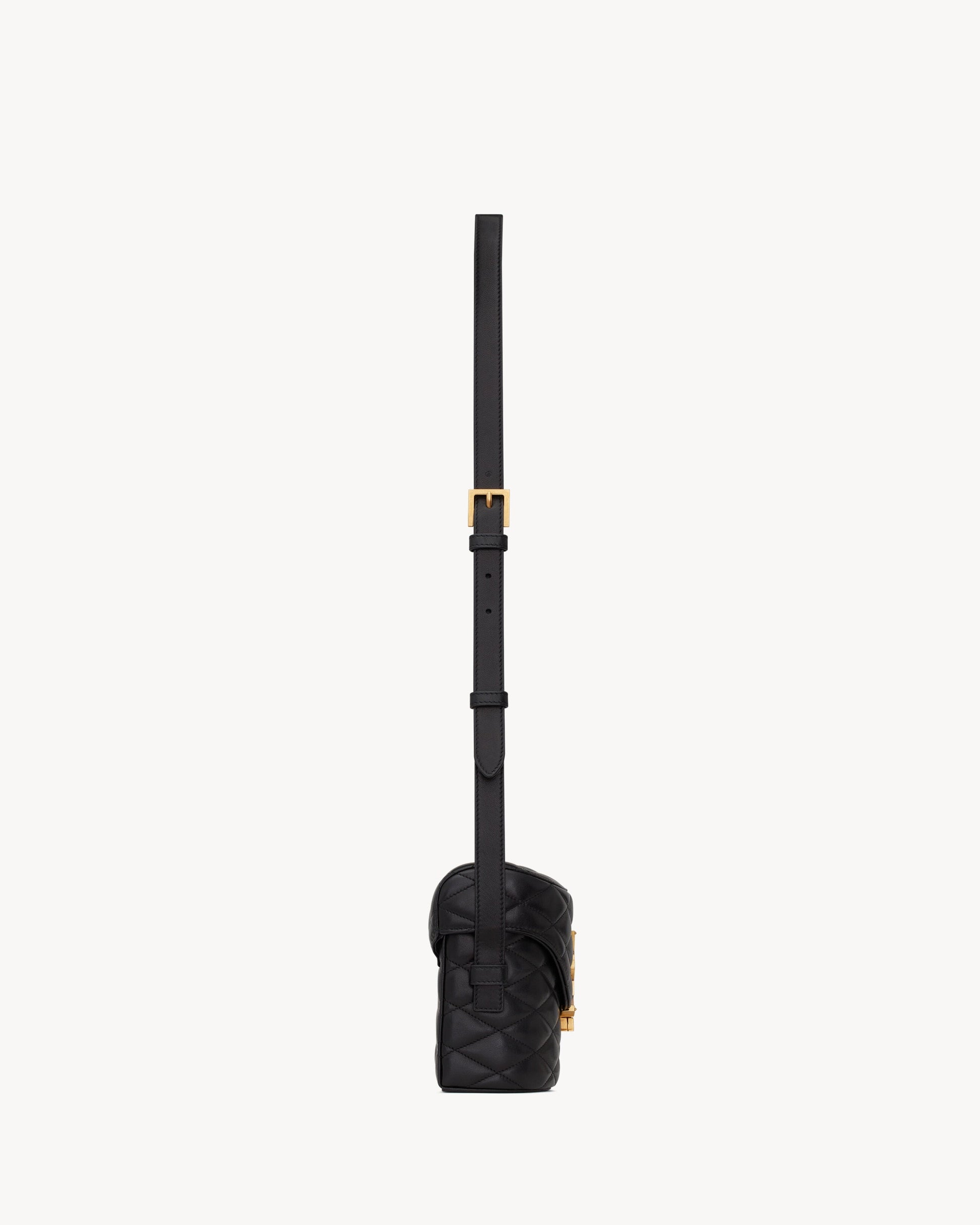 BOX BAG WITH FRONT FLAP FEATURING PIVOTING CASSANDRE CLOSURE AND DIAMOND-QUILTED OVERSTITCHING.