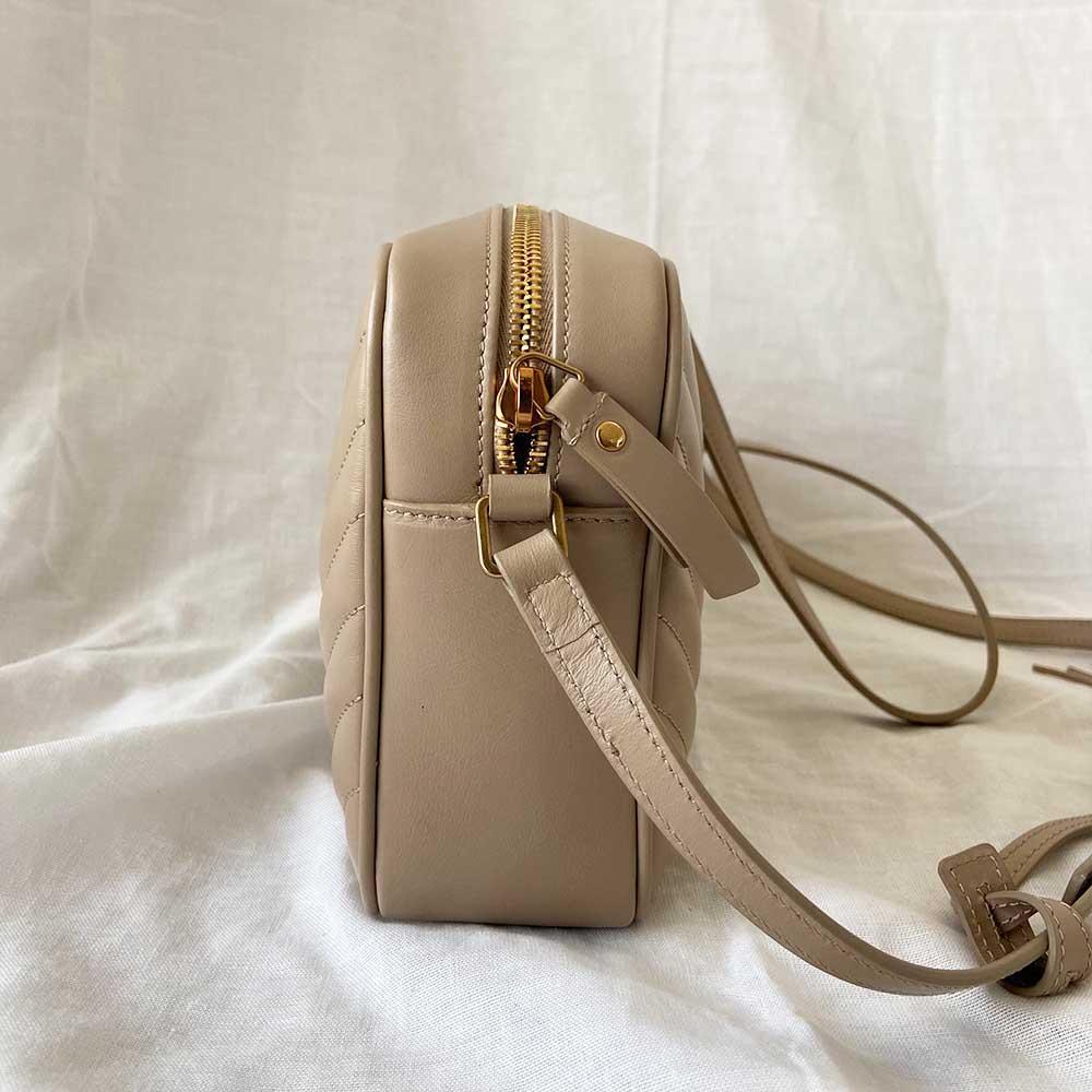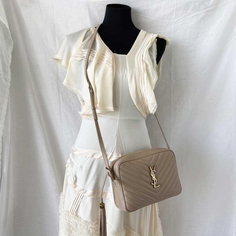 Description : Saint Laurent Lou medium quilted leather shoulder bag in nude leather featuring gold-tone hardware, tassel and an adjustable crossbody strap.