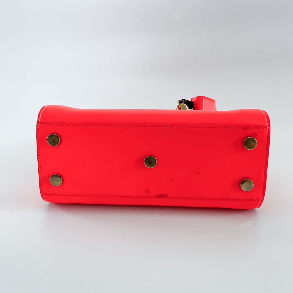 Saint Laurent neon orange nano sac de jour tote bag with a crossbody strap, black suede lined interior, comes with a key and lock
