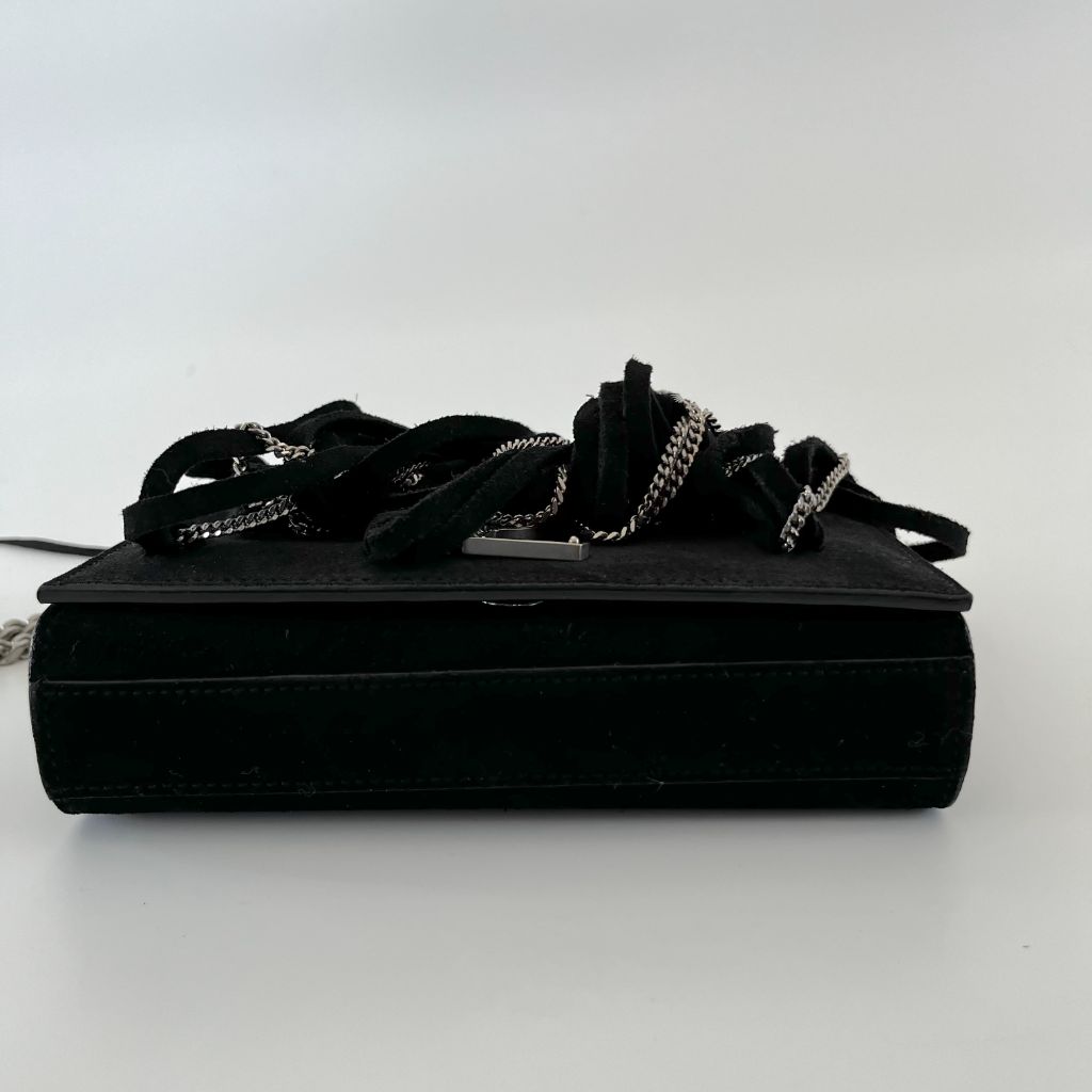 Saint Laurent Paris Black Suede Small Kate Tassel chain fringe Crossbody Bag, flap top with magnetic snap closure, leather lined interior
