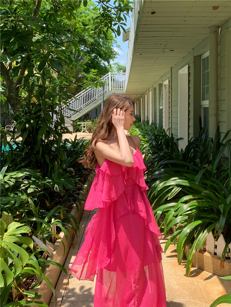 Seaside holiday chiffon ruffled suspender dress ED0413