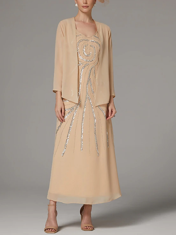 Sequin Solid Color Dress Suit