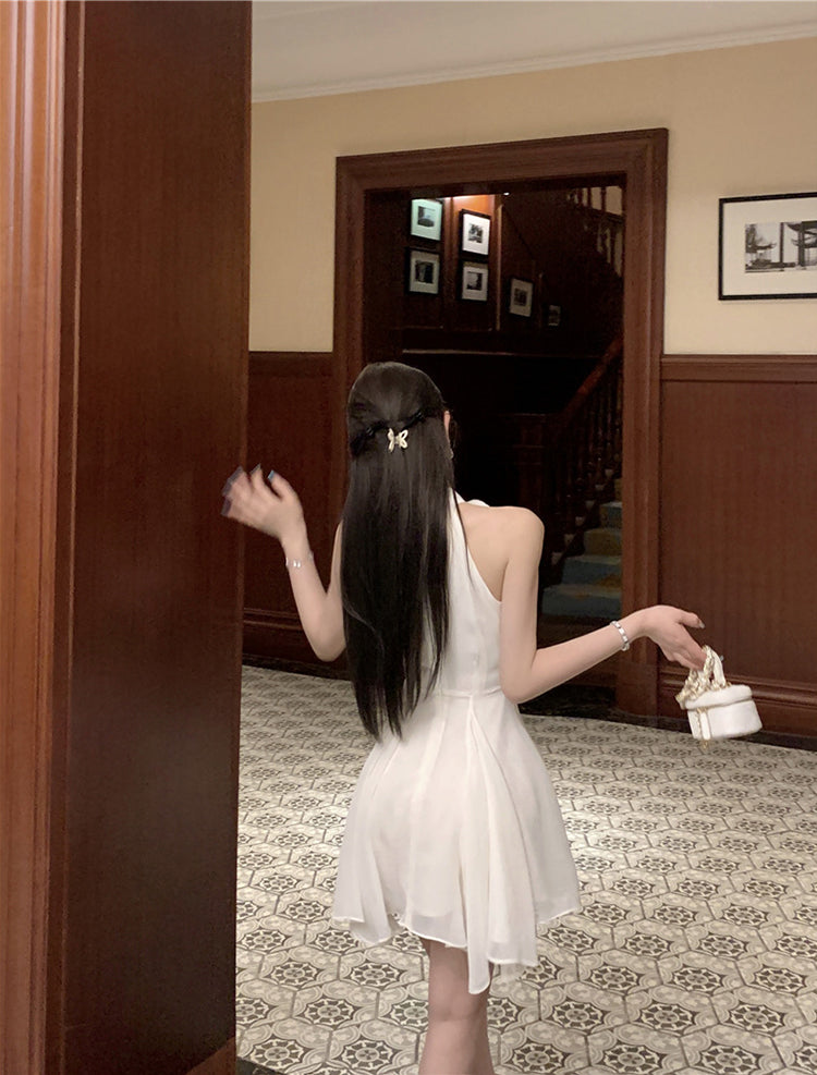 Sexy A line Halter Chiffon White Mini Short Formal 8th Grade Homecoming Dresses Summer Middle School Hoco Dress Homecoming Outfits Birthday Outfit DH1054