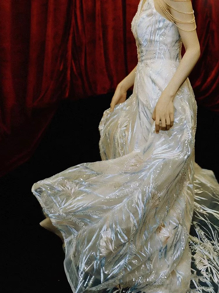 Sexy A Line High Neckline Sequin Long Evening Dress Prom Dresses SD1637
