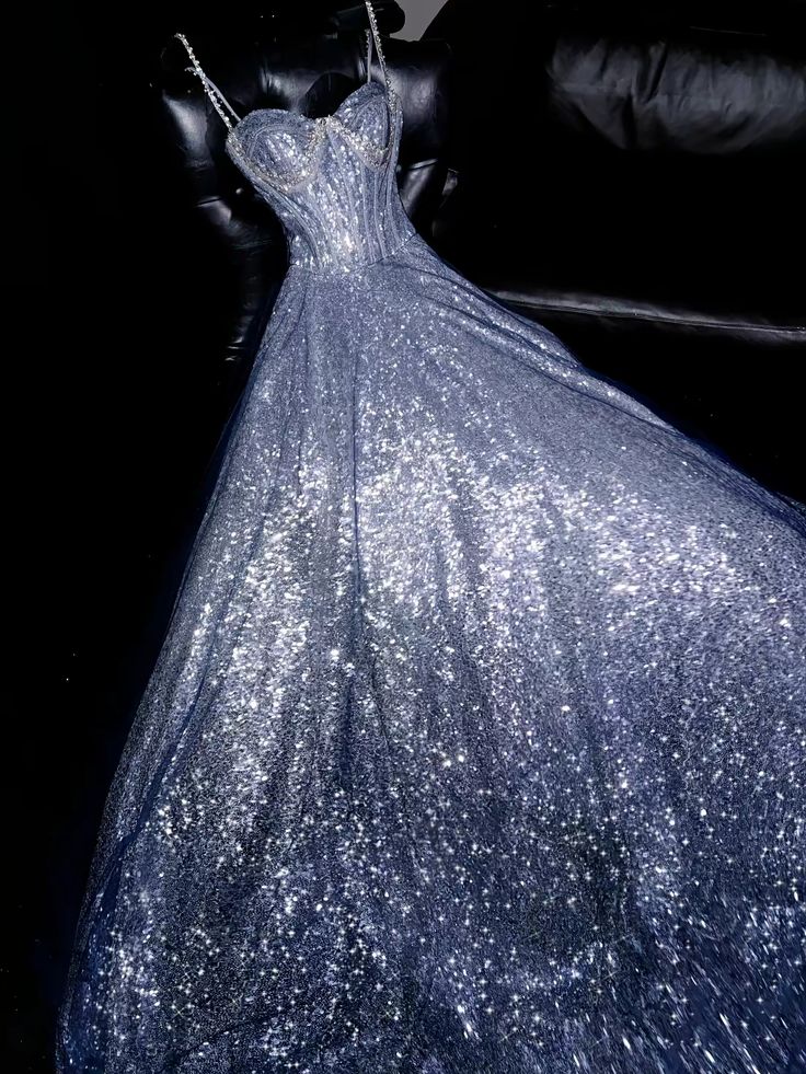 Sexy A line Spaghetti Straps Sequin Long Prom Dresses Party Dress 20th Birthday Outfits Graduation Dresses DH1990