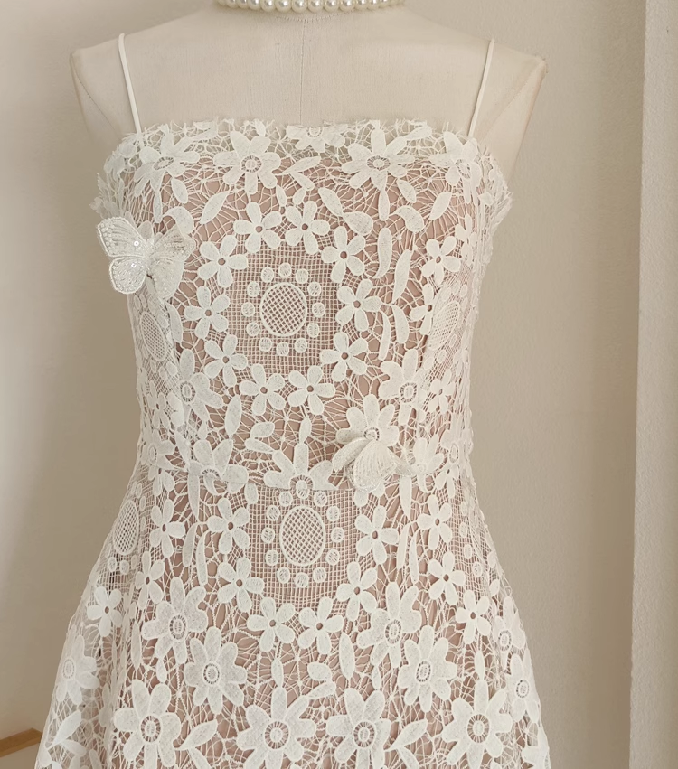 Sexy A Line Spaghetti Straps Tulle Lace White Women's Holiday Birthday Dresses SD227