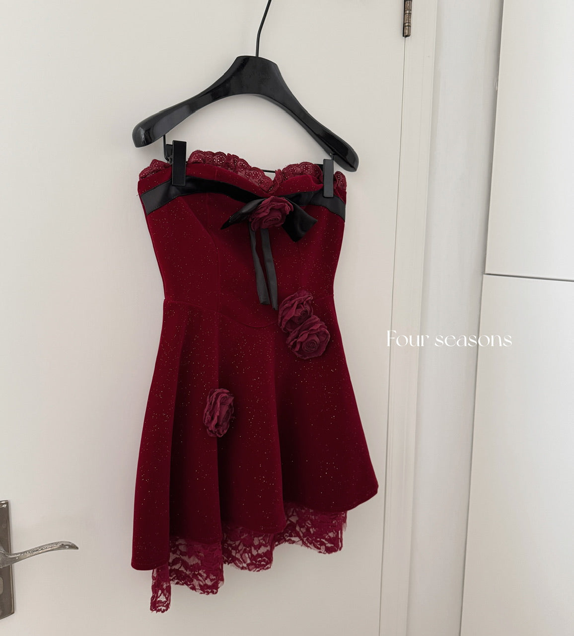 Sexy A line Strapless Summer Burgundy Velvet Dress Holiday Party Outfits For Women DP0028