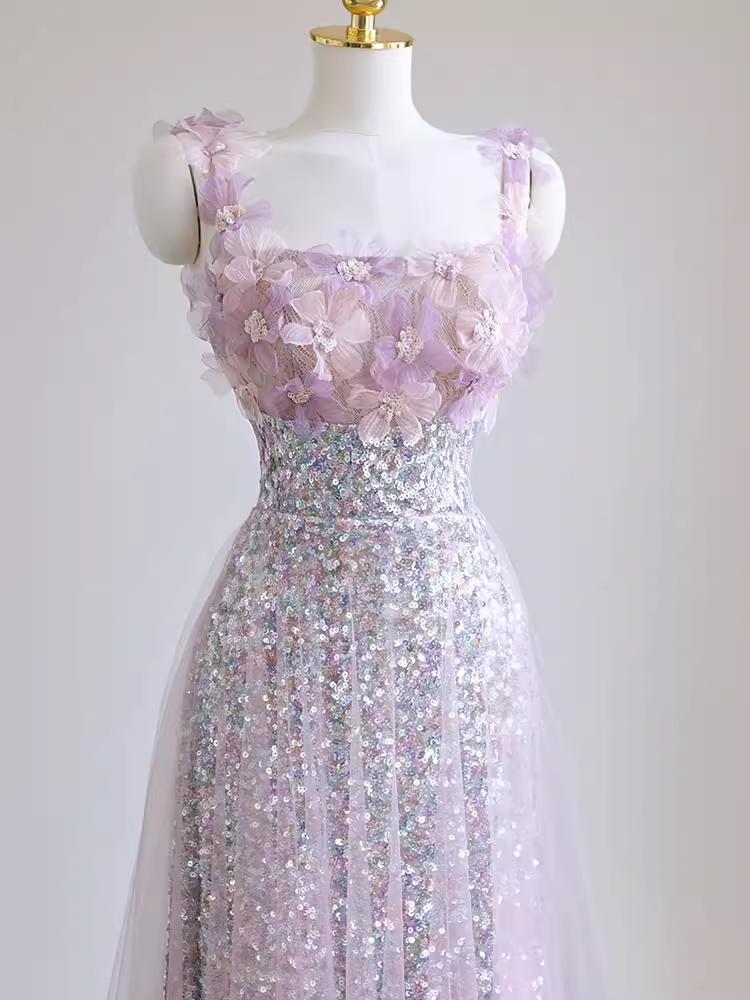 Sexy A line Straps Lilac Sequin Prom Dress P1532