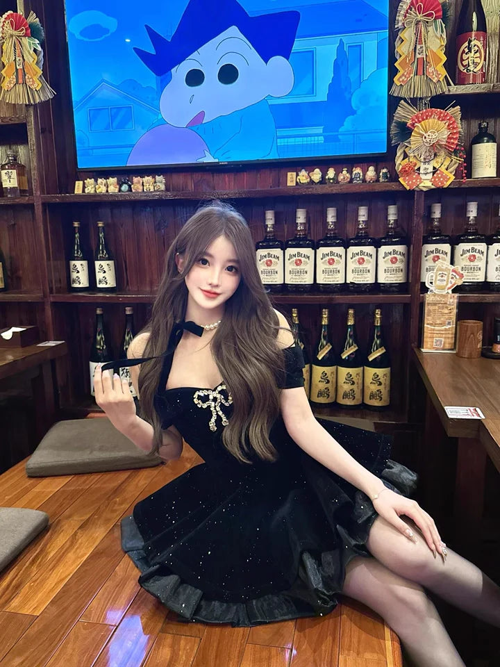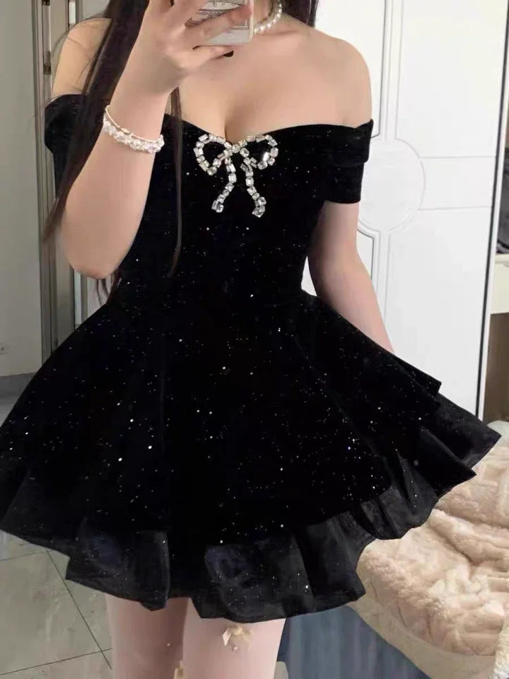 Sexy Ball Gown Off The Shoulder Black Velvet Short Formal 8th Grade Homecoming Dresses Summer Middle School Hoco Dress 6th Grade Graduation Outfits DH1882