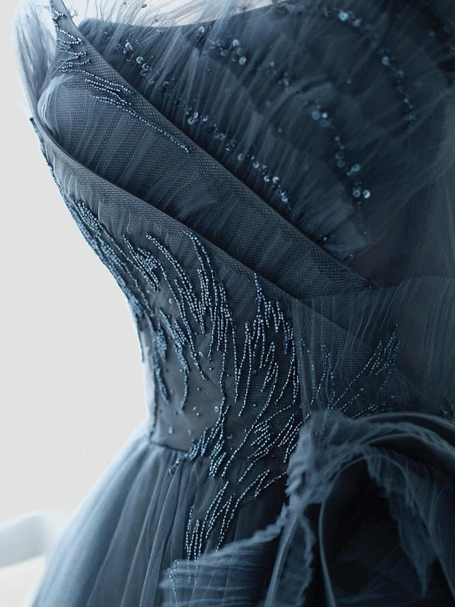 Sexy Ball Gown Spaghetti Straps Neckline Gray Tulle Evening Dress Prom Dresses SD2860