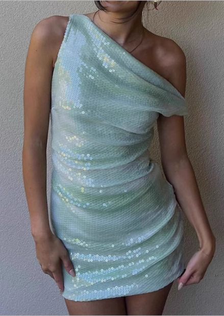 Sexy Green Off-the-shoulder Hip Sequined Homecoming Dress P3197