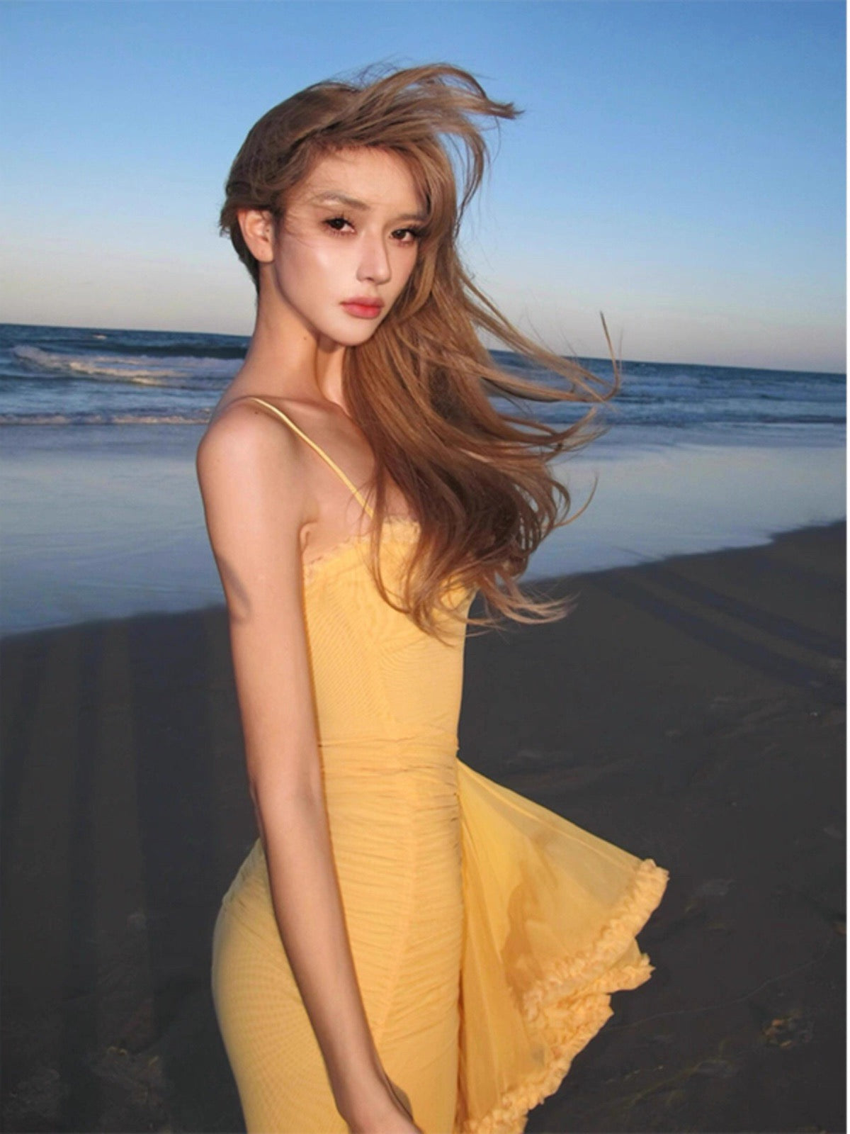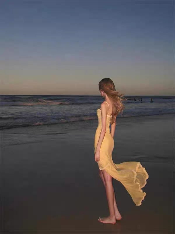 Sexy High Low Spaghetti Straps Yellow Long Birthday Dress Prom Dress Baddie Summer Birthday Outfit DP1024