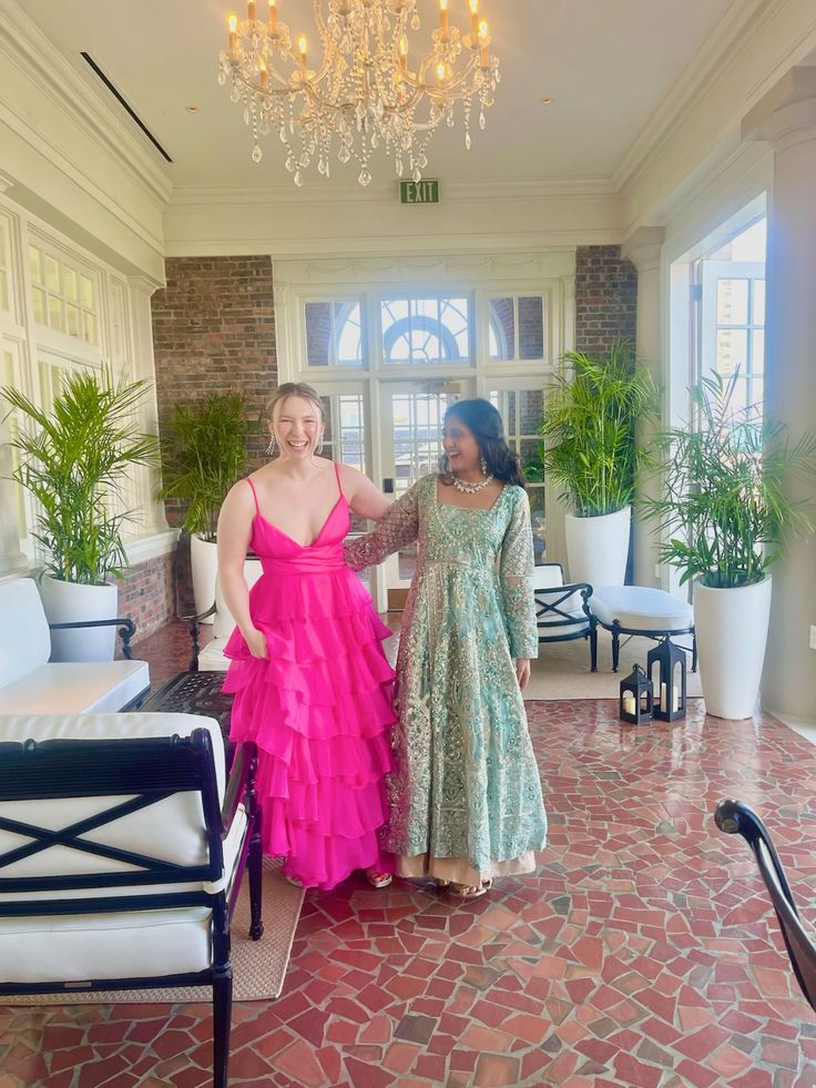 Sexy Hot Pink Layered A Line Evening Dress Chiffon Long Prom Dress SH1558