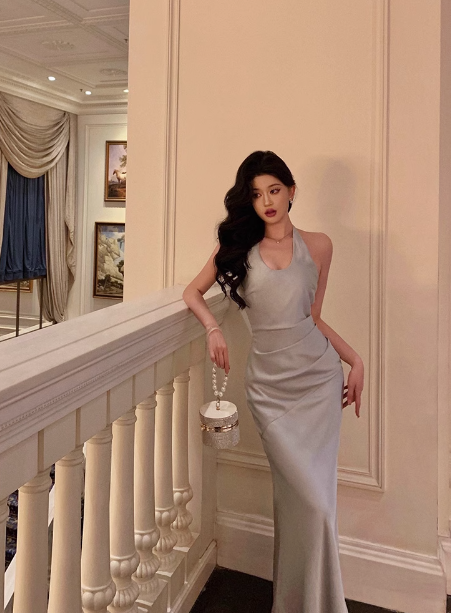Sexy Mermaid Halter Light Blue 18th Birthday Dress Long Party Birthday Outfits For Women DP0177