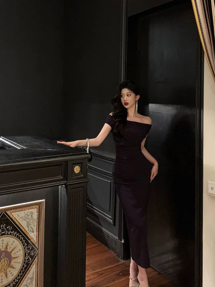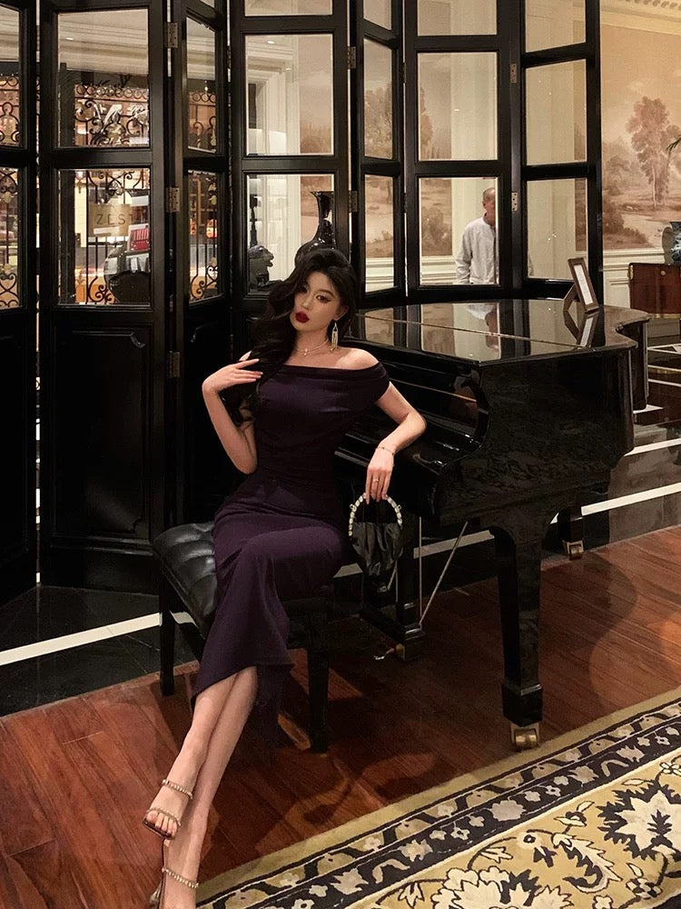 Sexy Mermaid Off The Shoulder Grape Ankle Length Prom Dresses Birthday Outfits SD613