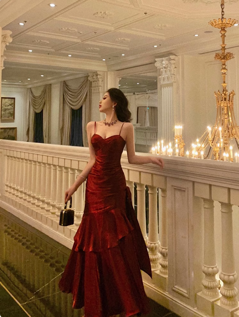 Sexy Mermaid Spaghetti Straps Burgundy 21st Birthday Dress Holiday Party Birthday Outfits For Women DP0192