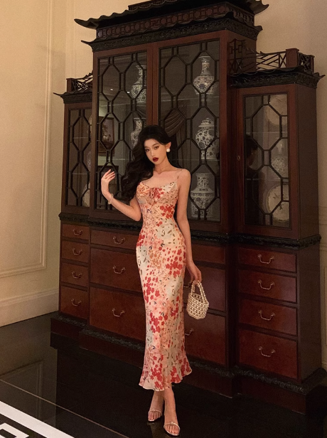 Sexy Mermaid Spaghetti Straps Floral Pink 18th Birthday Dress Holiday Party Birthday Outfits For Women DP0161