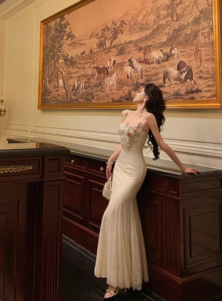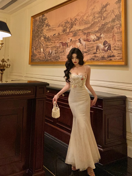 Sexy Mermaid Spaghetti Straps White Floral 18th Birthday Dress Long Party Birthday Outfits For Women DP0159