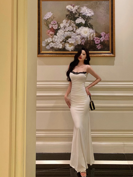 Sexy Mermaid Spaghetti Straps White Floral 21st Birthday Dress Holiday Party Birthday Outfits For Women DP0181