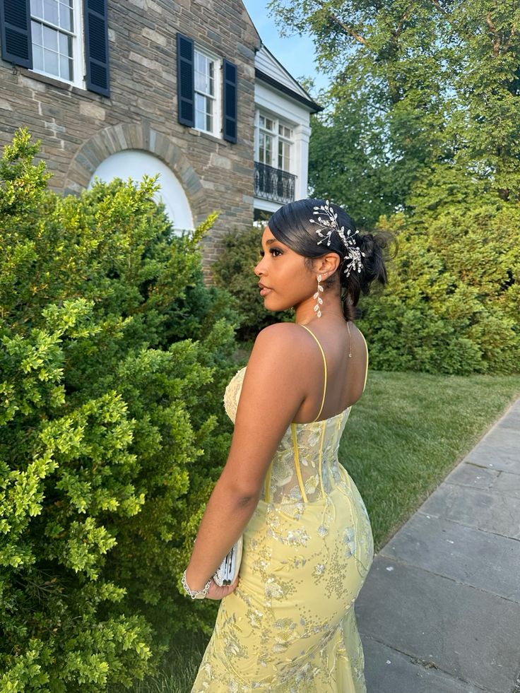 Sexy Mermaid Spaghetti Straps Yellow Sleeveless Prom Dresses Party Dress Summer Birthday Outfits Birthday Dresses W0505